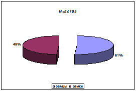 . Соотношение полов самцы к самкам составило в 2006 году - 1: