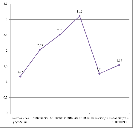 изменился на 0,07%, по сравнению с тем, когда удобрения не вносились.