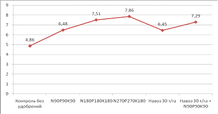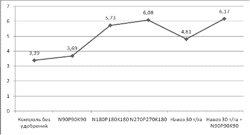 луке, но при внесении навоза этот показатель уменьшается до 4,81%.