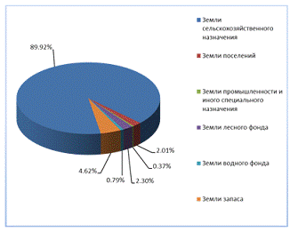 земли сельскохозяйственного назначения, что составляет 89,92% от общей площади