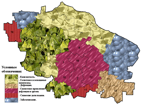 обстановки, развитие эрозионных процессов. На территории района основные потери