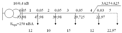 Втрата напруги в лінії 0,38