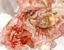 их некроз, поносы из-за поражения желудочно-кишечного тракта. На вскрытии, как