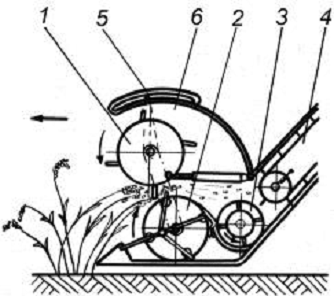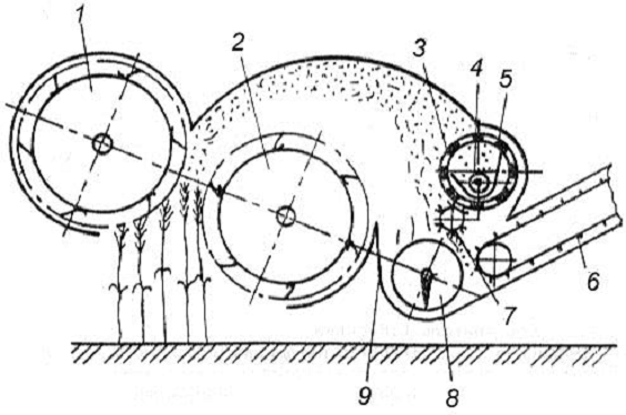 зминання, подрібнення та розрив стебел, а значна частина зерна при цьому