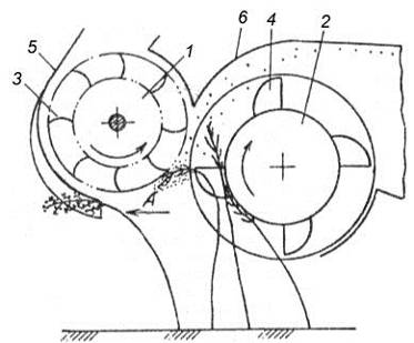 (лопатами) 9, кожуху 10, збірника обчісаного вороху 11.