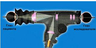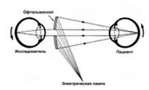 прибора - офтальмоскопа. Врач направляет луч света (исходящий непосредственно