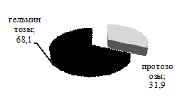 заболеваемости 90% приходится на группу гельминтозов (Романенко, 2003).