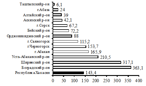 Усть-Абаканский, Боградский, Ширинский районы) и колеблется от 153,7 до 363,1