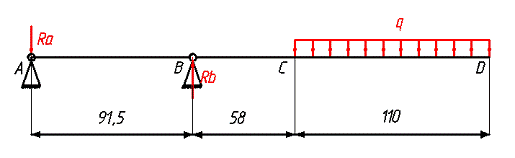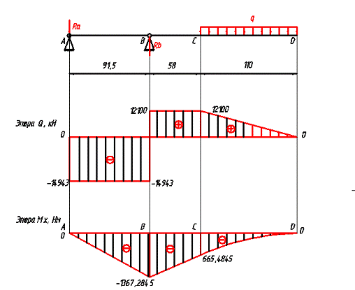 на прочность: приложив нагрузку q=5,5 кН/м с учетом коэффициента динамического