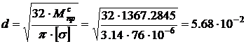 В сечении B находим диаметр: