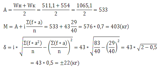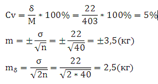 составила 403(кг), при этом стандартное отклонение составило ±22(кг), а