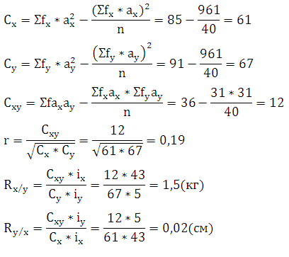 вычислить коэффициенты корреляции и регрессии, определить взаимосвязь между