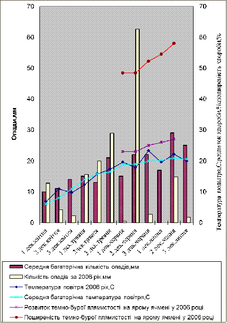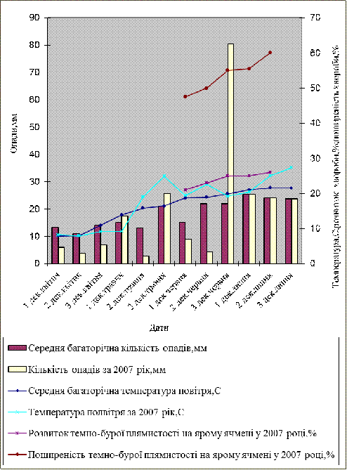 Вплив агрометеорологічних факторів на поширеність і розвиток темно-бурої