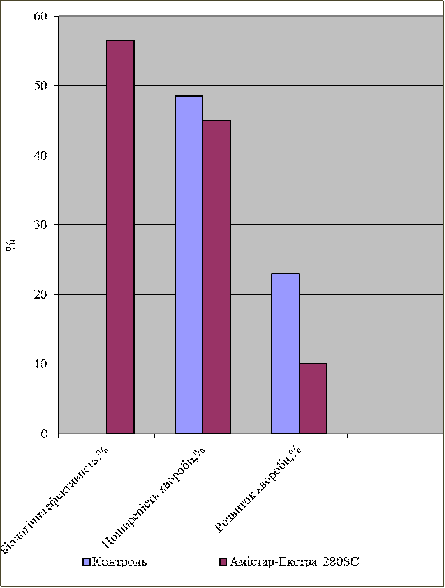 Амістар-Екстра 280 SC на поширеність темно-бурої плямистості на ярому ячмені