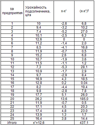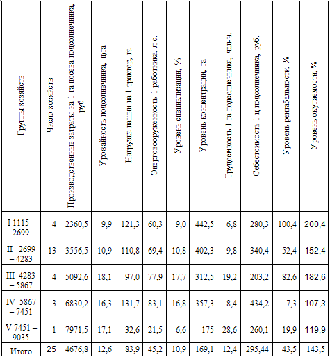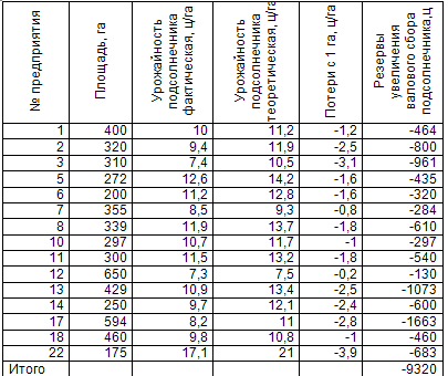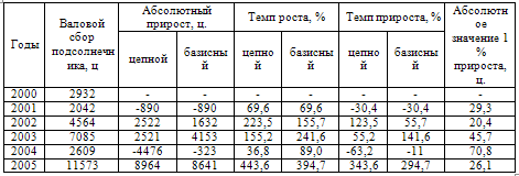 Статистико-экономический анализ производства подсолнечника на примере ООО 'Медвежье' Семилукского района и других хозяйств Аннинского и Хохольского районов Воронежской области