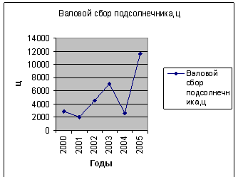 тенденции изменения валового сбора и урожайности подсолнечника в ООО