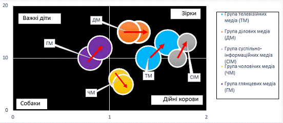 так як доля товарів в групі «Дійні корови» становить порядка 50% (журнали