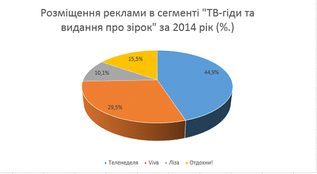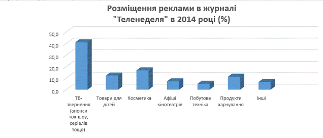 «Теленеделя» та газета «Комсомольска правда в Україні»); доля товарів в групі