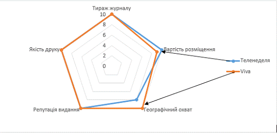 А ось «Viva» не задовольняє параметр «Вартість розміщення» та «Географія