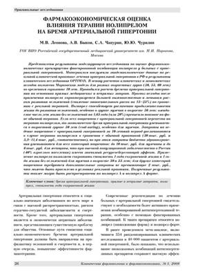 шрифт. Фармаэкономическая оценка влияния терапии нолипрелом на бремя