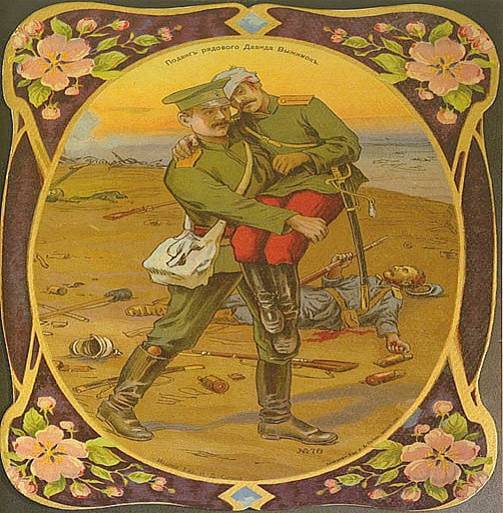 Этот рядовой нес на себе шесть верст под огнем противника раненного офицера.