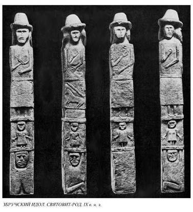 Збручскому идолу. По мнению большинства учёных, этот каменный идол, найденный в