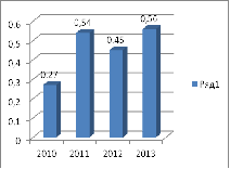 состоянию на 2013 г., что говорит о том, что у предприятия имеется возможность