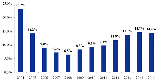 2014 году, до 18,3% в 2016 году. Это связано, прежде всего, с предполагаемым