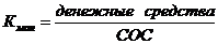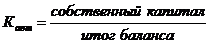 собственных средств - коэффициент обеспеченности собственными средствами; -