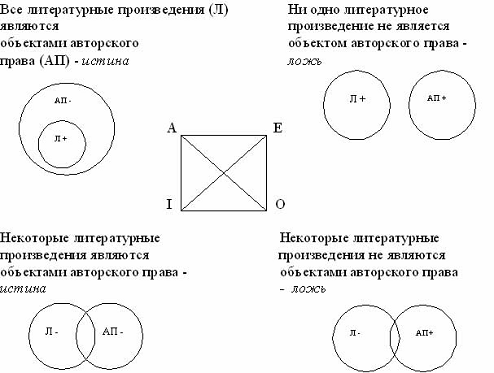 разделяет и отрицает оба следствия; заключение отрицает оба основания;