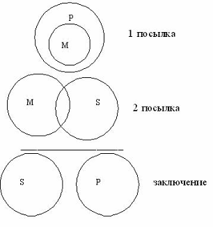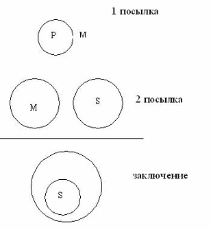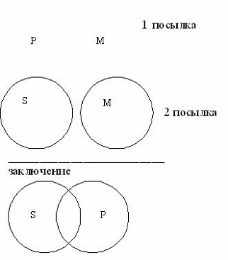 М и в большей, и в меньшей посылке одно и то же; изображаем М