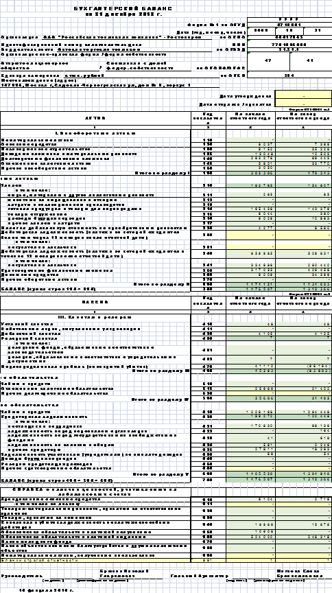 показателей деятельности ОАО «РОССИЙСКАЯ ТОПЛИВНАЯ КОМПАНИЯ»
