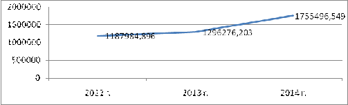 (валюта баланса) также возросла на 35,43 % и составила в 2014 г. 1755496