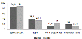 самой востребованной валютой, на который в 2013 году пришлось 87% торгового