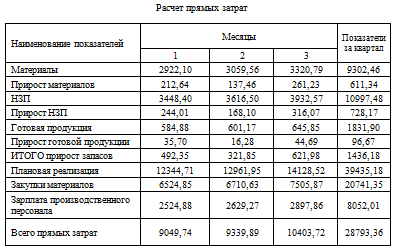 1.1 Расчет прямых затрат