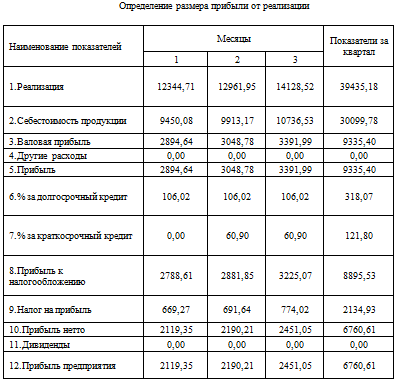.3 Определение размера прибыли от