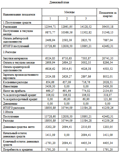 .4 Денежный план