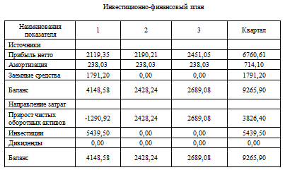 инвестиционно-финансового плана