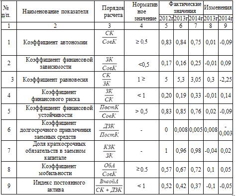 2.3 Показатели обеспеченности предприятия собственными