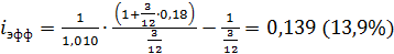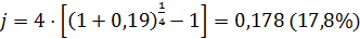 Эффективная ставка процента равна 19% годовых.