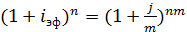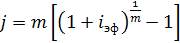 - разовое наращение в год по ставке j/m.
