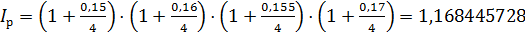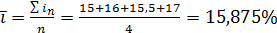 ставка 15%, во втором - 16%, в третьем - 15,5%, в четвертом - 17%. Чему равна