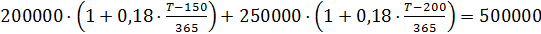 через 150 дней и в 250 000 руб. через 200 дней решено заменить одним платежом в