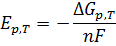 Источником электрической энергии является разность свободных энергий Гиббса,