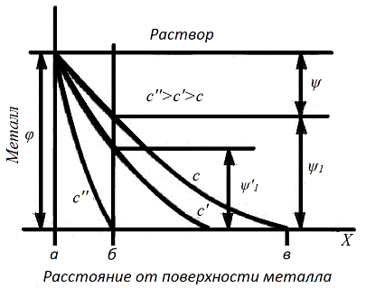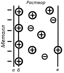 результате этого металл и раствор приобретают электрический заряд, и на границе