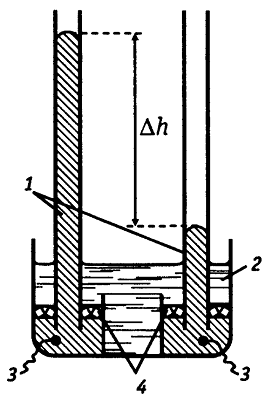 -ртуть; 2-раствор соли ртути; 3-впаянные в