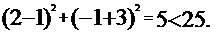 левую часть уравнения данной окружности, найдем квадраты расстояний от данных