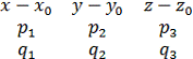 вектор M0M коллинеарен p. Обратно, если вектор M0M коллинеарен p, то точка M принадлежит прямой l. Таким образом, точка M принадлежит прямой l тогда и только тогда, когда вектор M0M коллинеарен p. Это определение может быть