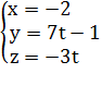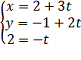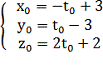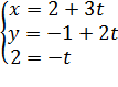 перепишем уравнение прямой в параметрическом виде x=2+t, y=-3+t, z=2t, подставим