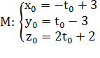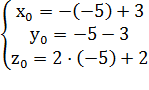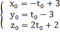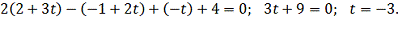 точки пересечения прямой и плоскости подставим значение t в параметрические уравнения прямой: